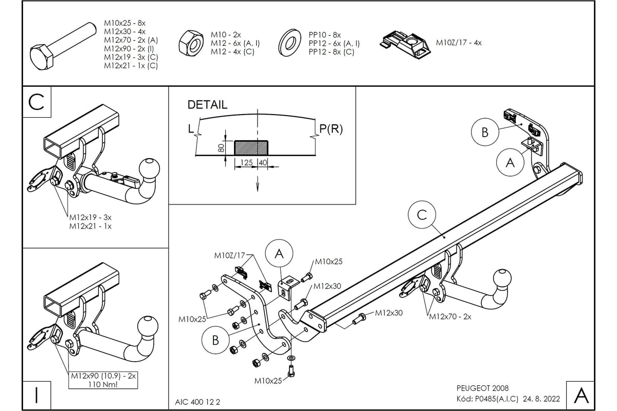 Полностью оцинкованный фаркоп на Peugeot 2008 2019- c шаровым узлом типа A (d=50 мм). Шар крепится с помощью болтов • Горизонтальная нагрузка: 1400 кг • Вертикальная нагрузка: 75 кг • Тип шара: A • Невидимая подрезка бампера • Требуется снятие бампера при установке • Электрики фаркопа нет в комплекте, приобретается отдельно • Шар крепится с помощью болтов, что дает возможность при необходимости снять его с использованием инструментов