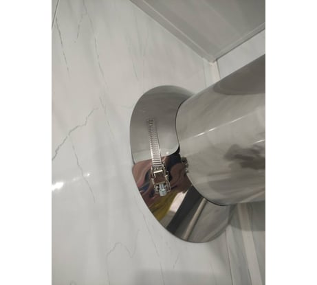 Из за кривых креплений соединяется не ровно. Идеального конуса не получается и нет четкого прилегания к стене. Пластина на мой взгляд приварена слишком далеко. Пришлось минут 20 повозиться что бы все соединить. И провернуть что бы спрятать крепление уже не получается т.к. слишком плотная посадка, хотя резьба зацепилась на 1-2 шага. Одевалось на 130 тубу