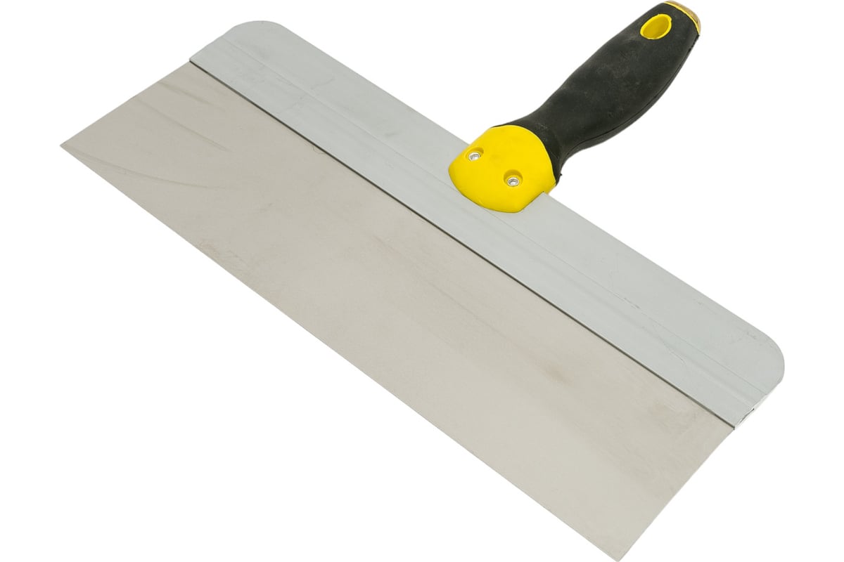 Фасадный шпатель Профи 350мм FIT HQ 06445 используется для нанесения и распределения рабочего материала на поверхность большой площади. Полотно изготовлено из нержавеющей стали, которая обеспечивает надежность и долгий срок службы. Прорезиненная рукоять не скользит в руке и имеет на конце металлический боек.