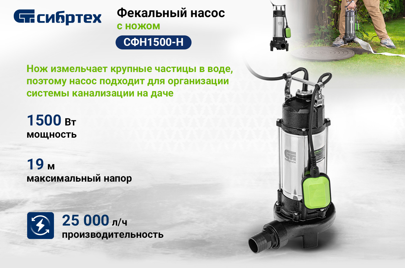 Фекальный насос СИБРТЕХ СФН1500-Н 99805