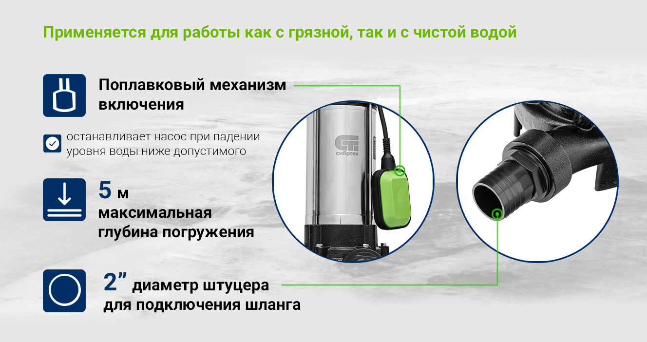 - Автономная работа — запуск и остановка насоса происходит автоматически в зависимости от уровня воды, без участия пользователя