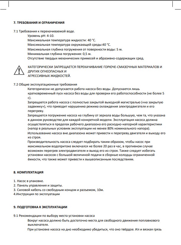 - Насосы SEG оснащаются силовым кабелем в водостойкой оболочке длиной 10 м.