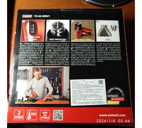 Купил этот технический фен Einhell TC-HA 2000 еще прошлой весной, когда нужно было снимать старую краску с забора перед покраской. С тех пор использовал его раз двадцать - и для краски, и для термоусадки проводов, и даже трубы размораживал. Сразу скажу - вещь рабочая, но со своими тараканами. Греет он действительно мощно - свои 2000 ватт выдает по полной, старую краску снимает как ножом, даже толстые слои. Две скорости обдува - это удобно, когда нужно то мощный поток, то помягче. Температурный диапазон от 50 до 600 градусов покрывает практически все бытовые нужды - и термоусадку сделать можно, и краску снять. В комплекте шли две насадки - плоская и рефлекторная, обе пригодились. Но есть и косяки - корпус при долгой работе на максимуме нагревается так, что без перчаток держать некомфортно. Регулировка температуры ступенчатая - только 300 и 600 градусов, без плавной настройки. Шумит прилично - как старый фен для волос, только громче. Пластик корпуса не внушает особого доверия - пока не сломался, но кажется хлипковатым. За полгода эксплуатации понял - это типичный "рабочий лом" за свои деньги. Для дома и дачи - самое то, если не ждать от него профессиональных возможностей. Снимать краску, греть что-то, усаживать термотрубки - справляется на ура. Главный совет - если берете, сразу купите термостойкие перчатки, или возьмите у супруги от отпаривателя, так как мне например, часто требуется то подержать, то поправить в том месте куду дует фен и голыми руками это не сделать. В целом - за свои деньги конкурентноспособный хороший аппарат.