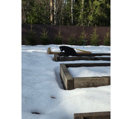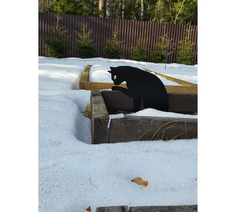 Садовую фигурку чёрного котика покупал в прошлом году. Цель была декоративная и как вариант защиты клубники от птиц. Как декоративный котик молодец. Издалека смотрится почти как реальный. А в качестве защитника урожая трудно оценить его. Но я надеюсь, что не зря установил. Без него было бы хуже.