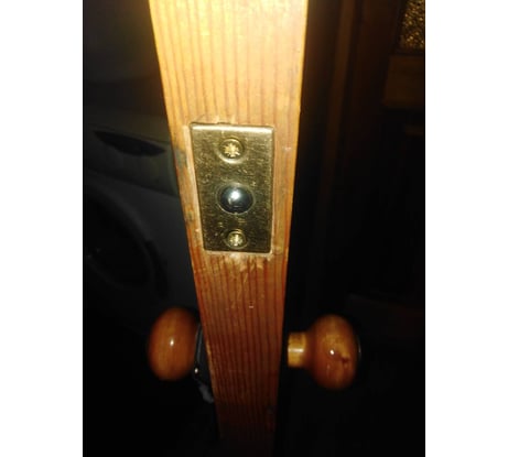 Хороший недорогой шариковый фиксатор для двери, небольшой размер. При установке надо тщательно подобрать зазор между накладками с учетом сезонного изменения размера двери.