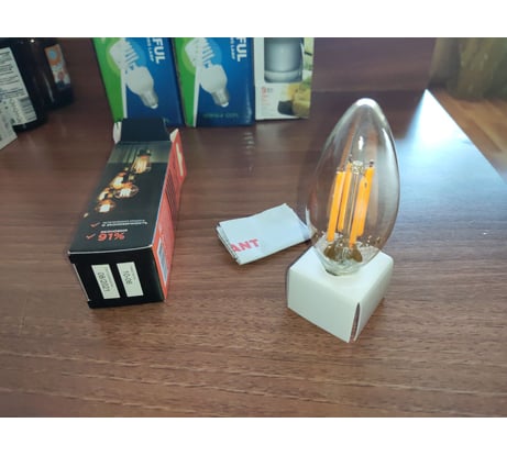 Отзывы о филаментной лампе REXANT Свеча CN35 9.5 Вт 2400K E14 золотистая колба 604-099