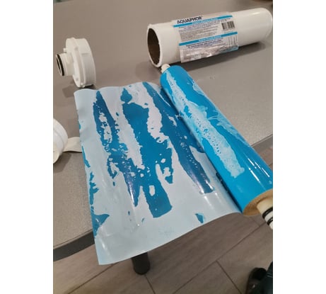 базовый картридж- так называемая мембрана за пять тысяч -представляет собой китайский модуль из рулона двухслойной вощеной бумаги проложенной мелкой полиэтиленовой сеткой. Вот и всЕ ноу-хау... Уголь из первого модуля забивает наглухо все клапана, трубки и капилляры. Вода течет в слив тоннами. После отработки одного комплекта картриджей весь блок приходится промывать с полной разборкой. Но после изучения содержимого "мембраны" решил выбросить эту ... .