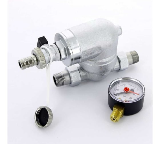 Монтаж: Устанавливается на трубопровод с резьбовым соединением 1/2 согласно направлению потока, указанному на корпусе. Перед монтажом рекомендуется промыть систему и предусмотреть запорную арматуру для удобства обслуживания. Фильтр монтируют в доступном месте, чтобы можно было контролировать показания манометра и выполнять очистку. После установки необходимо проверить герметичность соединений и плавно подать давление.