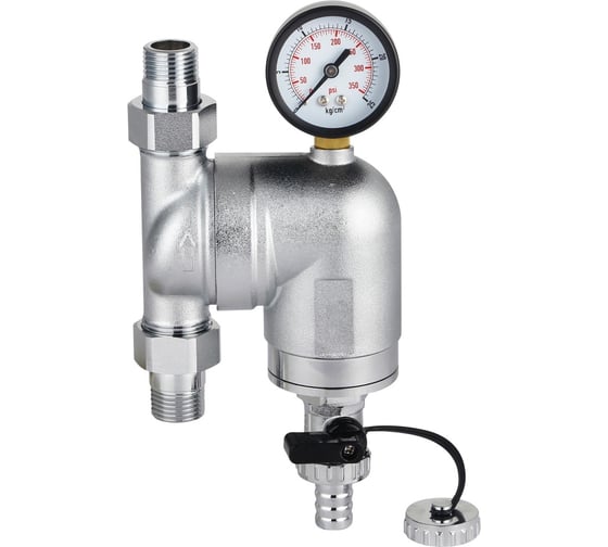 Монтаж: Установка фильтра выполняется на горизонтальный или вертикальный участок трубопровода с резьбовым соединением 3/4, с учётом направления потока, указанного на корпусе. Для обеспечения корректной работы манометра рекомендуется монтировать устройство в доступном для визуального контроля месте. Перед монтажом систему отключают и сбрасывают давление, затем герметизируют резьбовые соединения и аккуратно затягивают фитинги без избыточного усилия. После установки выполняют плавный пуск воды и проверку герметичности соединений.