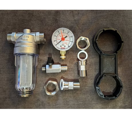 Американки и приспособа для обслуживания фильтра в комплекте, монометр точный. Все понятно, просто и легко заменимо.