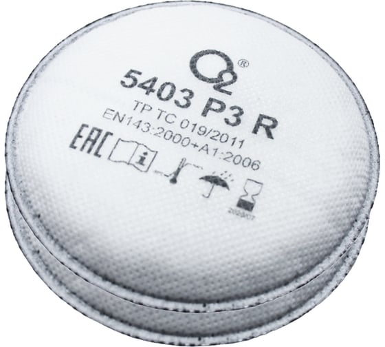 Фильтр противоаэрозольный угольный 5403 P3 R высокой эффективности, многоразовый. Продукция изготовлена в соответствии с EN 143:2000+А1:2006 «Средства индивидуальной защиты органов дыхания. Фильтры противоаэрозольные.»