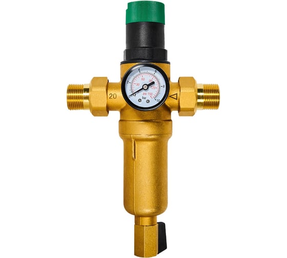 Модель выполнена в полностью латунном корпусе — включая колбу, что обеспечивает повышенную прочность, устойчивость к высоким температурам и длительный срок службы. Устройство объединяет в себе механический фильтр и редукционный клапан, обеспечивая комплексную защиту сантехники, котлов, бойлеров и трубопровода от загрязнений и перепадов давления.