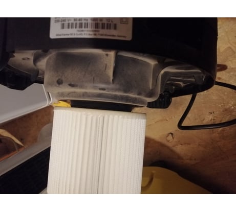 Поставил на KARCHER WD2 Plus, сел на своё посадочное место плотно. Стопор гайка пластиковая (фильтра) встала без усилий. У KARCHER WD2 Plus отверстие под гайку закрыто пластиковой пробкой очень плотно, может показаться, что его нет (колхозить ничего не надо, все подходит). Не рекомендую использовать без мешка, иначе придётся очень часто чистить фильтр (купил допом многоразовый мешок).