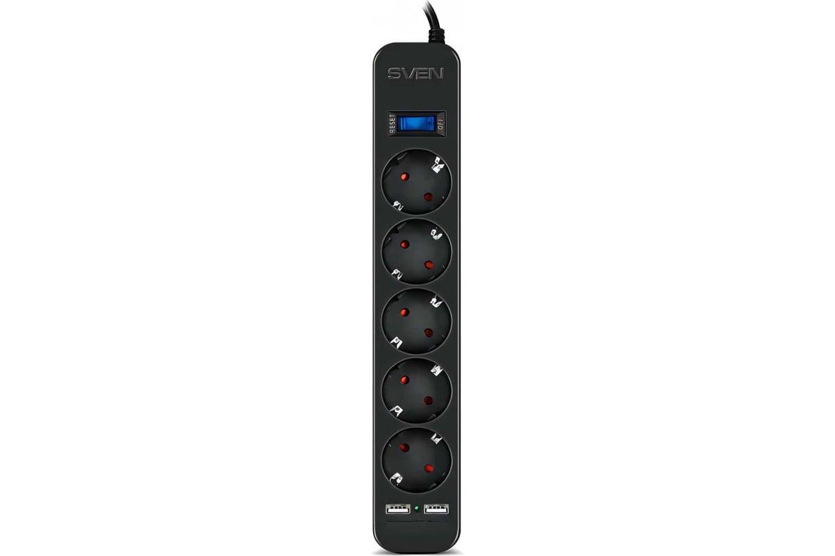 Расходные материалы для фильтра SVEN SF-05LU 1,8 м (5 евро розеток,2*USB(2.4А)) черный, цветная коробка SV-018832