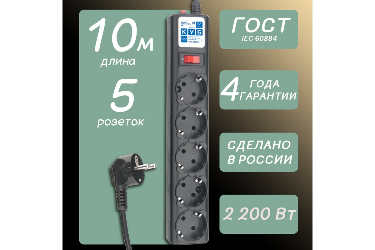 Отзывы о фильтре-удлинителе Power Cube 10,0 м 5 розеток (черный графит) 10А/2,2кВт SPG5-10M