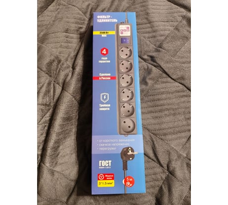 - Количество розеток с заземлением: 5 шт.