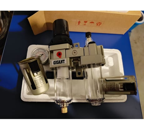 Вопросы и ответы о фильтре влагоотделитель Gigant с регулятором давления и лубрикатором 1/4" GAC3010-02