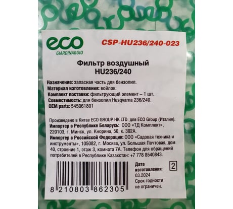 Воздушный фильтр покупал для Husqvarna 236. Фильтр установил без проблем, все хорошо. По качеству изготовления фильтр хороший, сделан аккуратно без каких-либо дефектов.