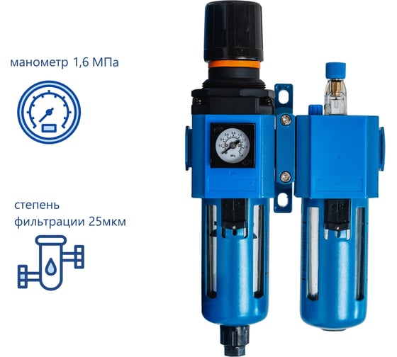 Блок подготовки с фильтр-регулятором, манометром и лубрикатором используется для подготовки