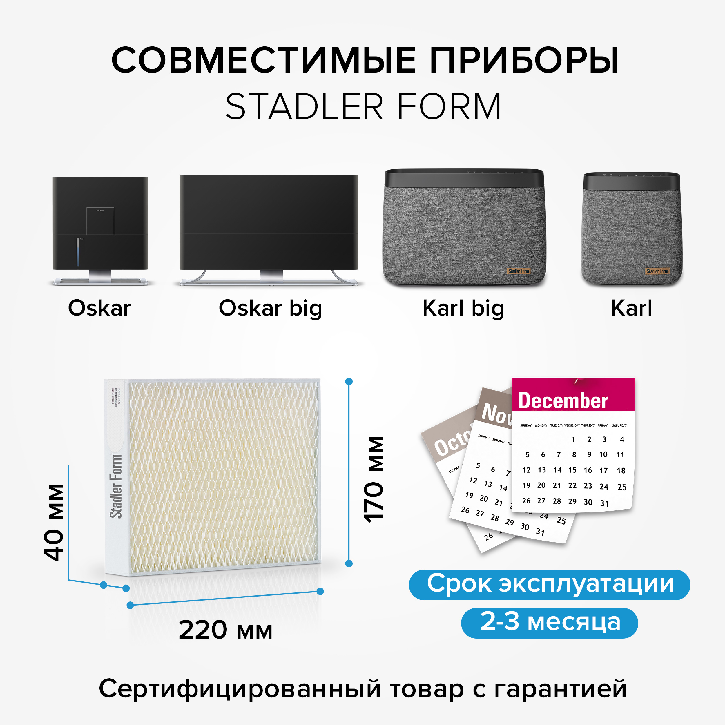 Технические характеристики фильтров для увлажнителя Stadler Form O-030