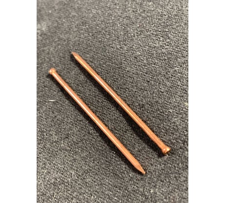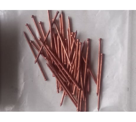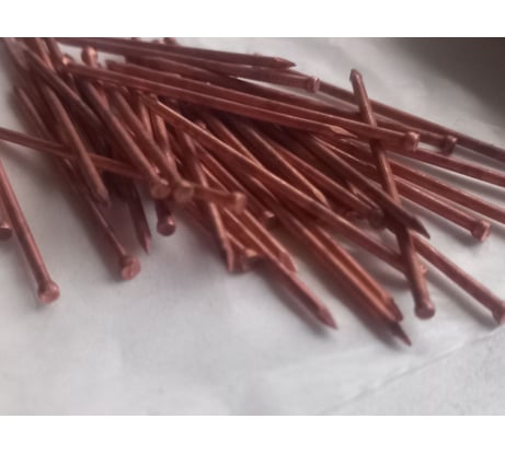 Гвозди изготовлены аккуратно. Медное покрытие нанесено равномерно. Гвозди имеют уменьшенную шляпку. Диаметр шляпки 2,2 мм. При забивании гвоздей я использовал добойник. Острые. Облоя на заострении нет. Входят в дерево хорошо. Мне гвозди понравились. Рекомендую.