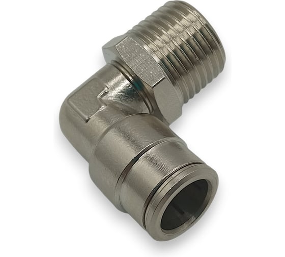 Фитинг пневматический цанговый угловой для быстрого и надежного соединения пневматических трубок с резьбовыми портами в системах автоматизации и пневмопривода.