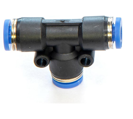 - PUТ - модель фитинга (трубка-трубка): Т-образный фитинг-тройник с нажимным цанговым соединением