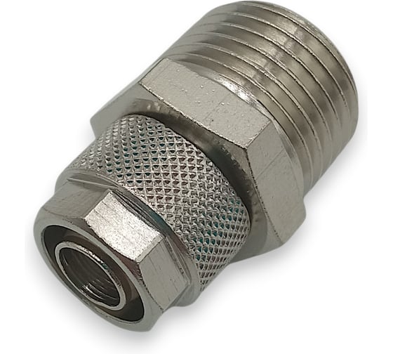 Прямой фитинг с накидной гайкой для надёжного соединения пневматической трубки с резьбовыми элементами системы.