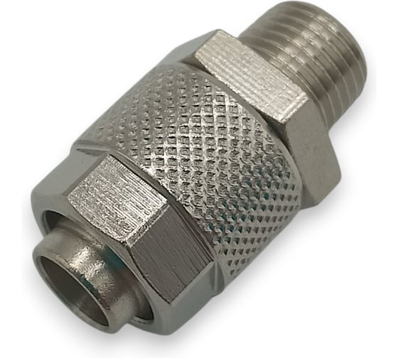 Конструкция обеспечивает герметичное соединение трубки диаметром 10мм с резьбой 1/8. Изделие выполнено из никелированной латуни, устойчиво к вибрациям и перепадам давления. Накидная гайка обеспечивает быстрый монтаж и демонтаж без специального инструмента.