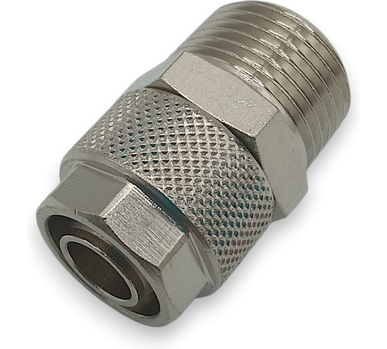 Прямой фитинг с накидной гайкой для надёжного соединения пневматической трубки с резьбовыми элементами системы.