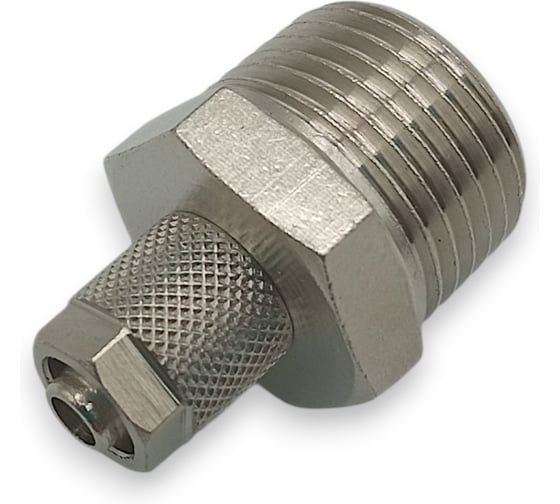 Прямой фитинг с накидной гайкой для надёжного соединения пневматической трубки с резьбовыми элементами системы.