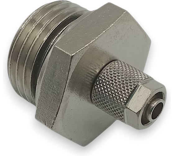 Прямой фитинг с накидной гайкой для надёжного соединения пневматической трубки с резьбовыми элементами системы.
