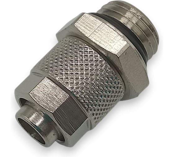 Прямой фитинг с накидной гайкой для надёжного соединения пневматической трубки с резьбовыми элементами системы.