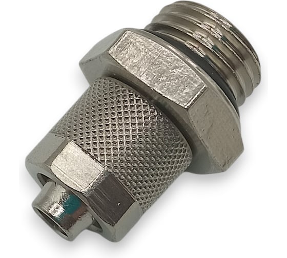 Прямой фитинг с накидной гайкой для надёжного соединения пневматической трубки с резьбовыми элементами системы.