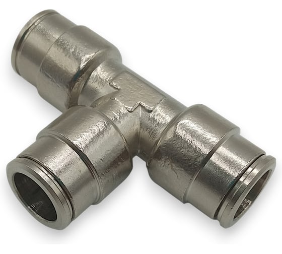 Пневматический тройник для разветвления трубопроводов и подачи сжатого воздуха в промышленных системах автоматизации и пневмопривода.