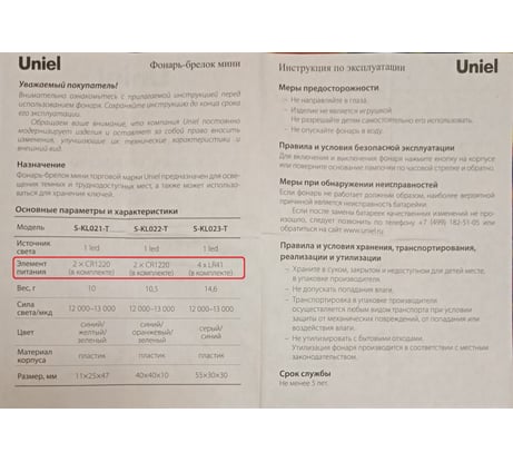 Не тот товар и не та цена, чтобы докапываться до него или делать крутые супер-пупер обзоры на полчаса. Но докопаться надо до интернет-магазина. И вот почему. Забрал в пункте выдачи три брелока (взял все три цвета). Пою песенку - "Нажми на кнопку - получишь результат!". Жму. Не получаю. Хватаю за грудки продавца. Под пытками он сознаётся - из описания товара следует, что батарейка в комплект не входит! Я сдуваю с него (продавца) пылинки и приношу миль-пардоны. Понимаю - косяк мой, надо учить матчасть и читать описание самому полностью и сразу. А я, такой-сякой кустарь-баптист, уверовал в неразрывную вселенскую связь фонарика и батарейки и что первое без второго за 52 рублёв продаваться просто, ну, никак, не может. Тут же заказываю во Всехинструментах батарейки - комплект 5 штук аж за 69 рублей. Через пару дней забираю. Дома вынимаю брелоки из упаковки - она слюдяная, прозрачная. И что я вижу?! Из корпусов торчат полоски - тоже слюдяные прозрачные. Которые я не видел ранее. В частности когда жал на кнопки в магазине. Лёгким движением руки вытягиваю полосочки. И шо ви думаете? Жму на кнопку - получаю результат! Фонарик, несмотря на утверждение магазина об отсутствии батарейки в комплекте, горит! Там же, в упаковке нахожу описание товара (фото прилагаю), из которого следует, что батарейка в комплекте наличествует! О, как! Как тебе такое, уважаемая редакция?! Я попал на целых 69 полнокровных рублей! Кто теперь за это ответит?! Так что, товарищи всеинтрументовцы, вы уж описание подправьте. А то из-за него я не выпил 1,5 литра самого лучшего - вологодского - молока.
