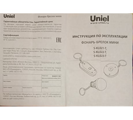 Вопросы и ответы о фонаре-брелоке Uniel S-KL021-T стандарт BLUE UL-00004094