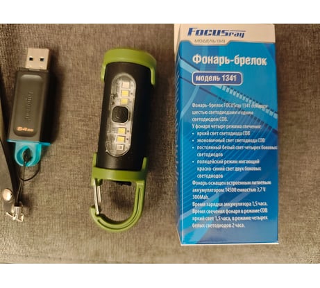 Отзывы о фонаре FOCUSray 1341 аккумулятор 300 mAH COB+ 6 штук WHITE LASER ,USB кабель 890354