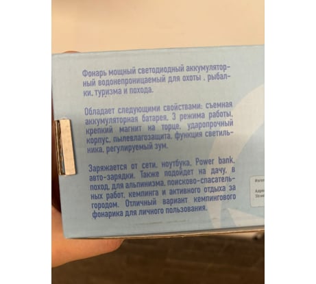 Ну во-первых, сомневаюсь во влагозащите - от сильных потоков воды (дождя) вряд ли спасёт, изморозь - возможно. Во-вторых, в описании на ВИ три режима работы, на упаковке - написано четыре; реально три; минус производителям. Светит реально очень ярко - тут придраться не к чему. Итог: хороший по яркости фонарь (хотя и не дешёвый), но я бы от дождя его берёг.