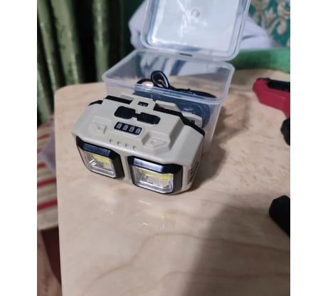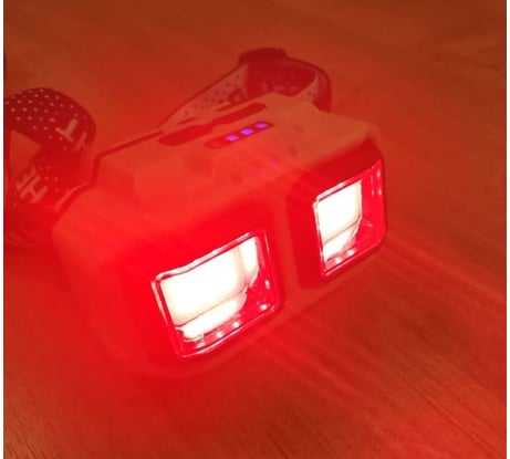Пришёл с полным индикатором зарядки. 4 светодиода-индикатора 100% / 75% / 50% / 25%. 4 режима свечения: яркий белый, не яркий белый, красный и красный стробоскоп. Взял на стройку, одел когда стало темнеть включил второй режим и через 20 минут фонарь благополучно меня подвёл сев. Подумал я что данный товар мягко говоря не соответствует описанию и не выполнит задачи для которых покупался. Но тестирование меня успокоило. Заряд блоком 6 вольт 2 ампера. Тест: 1. заряд 6 часов. включен на первый режим с момента включения 65 минут до 75%, с момента включения 87 минут до 50%, с момента включения 106 минут до 25%. При снижении до 25% начинает гореть тусклее, да и не стоит глубоко аккумулятор садить. 106 минут яркого режима более или менее приемлимо. 2. заряд 6 часов. включен второй режим с момента включения 91 минута до 75%, с момента включения 120 минут до 50%, с момента включения 134 минуты до 25%. 2 часа работы что подходит для выполнения необходимых работ. 3. заряд 6 часов. включен третий режим с момента включения 343 минуты до 75%, с момента включения 470 минут до 50%, с момента включения 530 минут до 25%. Третий режим (красный свет) позволяет видеть, но работать не получится с ним. Он на подобии дежурного овсещения.