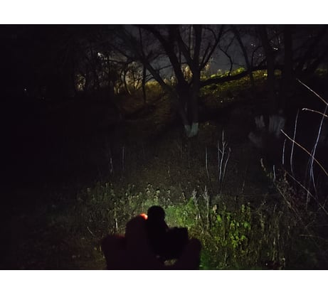 Отличный фонарь для бытовых нужд. Светит в меру ярко, не тяжелый. Имеется возможность переключения на дальний и ближний свет разными светодиодами. Купил уже второй, первый забыл в командировке, спустя год эксплуатации. На фото: освещение при ближнем рассеивающем свете и дальнем узким лучом. Был бы съемный аккумулятор, за эту цену был бы фонарь на все 100%.