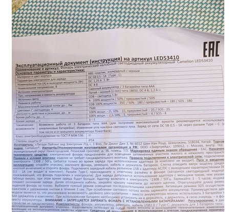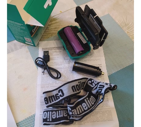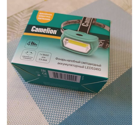 Фонарь налобный аккум Camelion LED53410 3,7В, зелен, COB, 3 Вт, 3 реж, 3 x AAA, Type-C, бокс 15761
