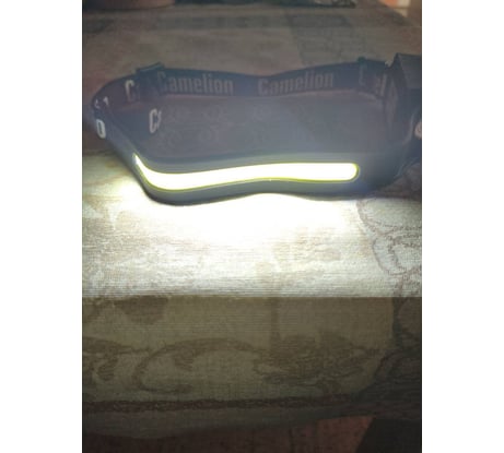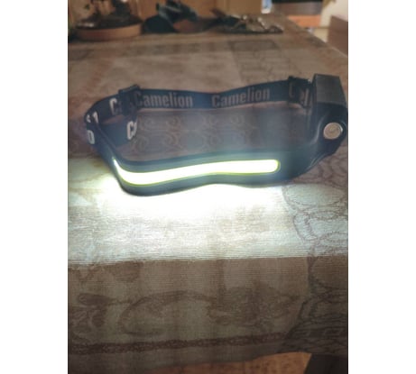 Фонарь Camelion налобный светодиодный оригинальной конструкции, работающий на 3 элементах питания типа ААА, интегрированный в эластичный каучуковый ремешок, который является светящейся частью самого фонаря.