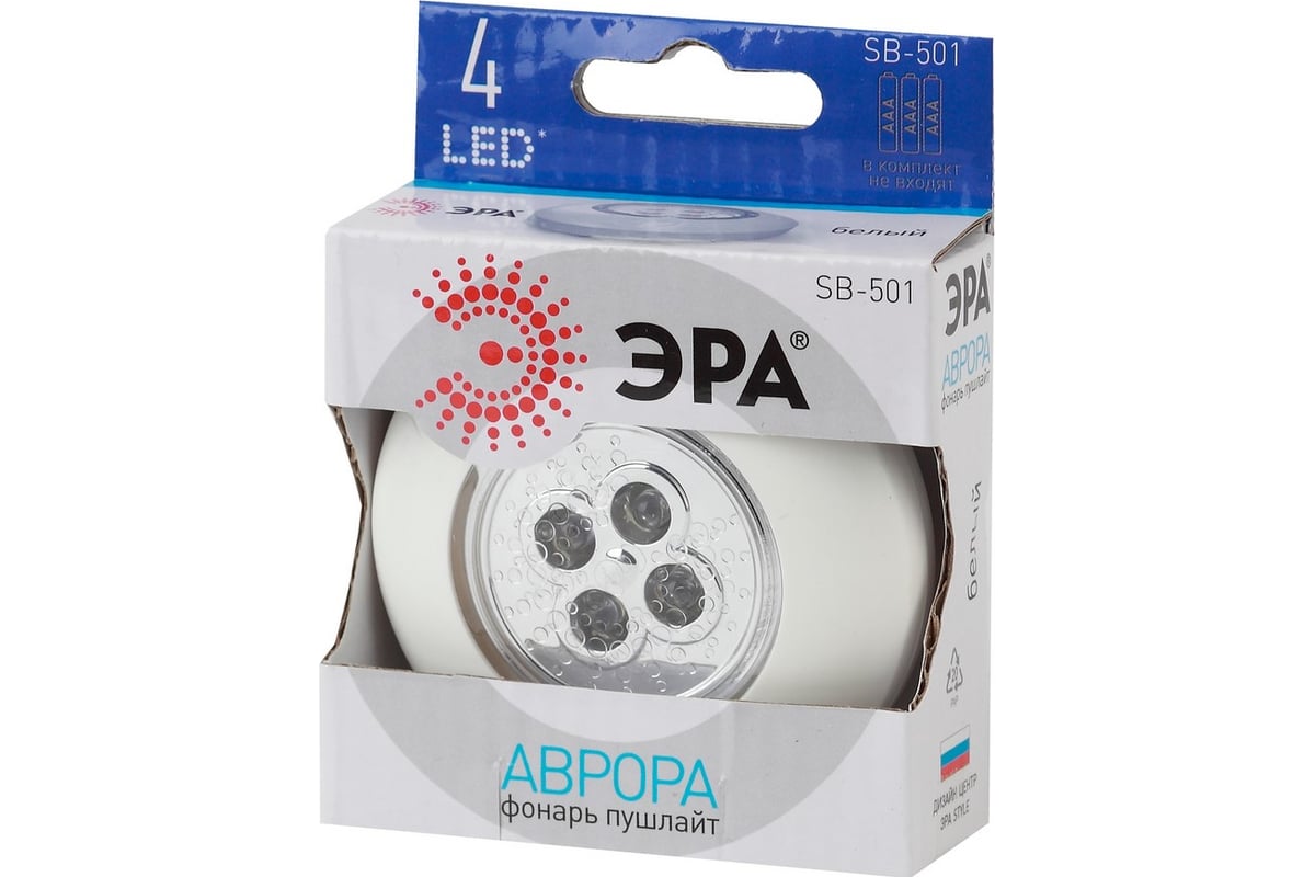 Расходные материалы для фонаря-пушлайта ЭРА SB-501 Аврора 4xLED, 3xAAA, белый 1шт в коробке Б0029181