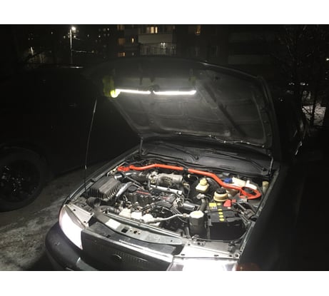 Стандартный фонарь, функцию освещения выполняет на все 100% для освещения подкапотного пространства в автомобиле да и не только годится, особенно из за мобильности аккумуляторного инструмента.