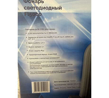 Вопросы и ответы о фонаре Rossvik 5000люмен, 12В, 2.5Ач с магнитным держателем FL5000