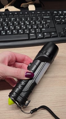 - Конусообразный наконечник на корпусе для экстренного разбивания стекла