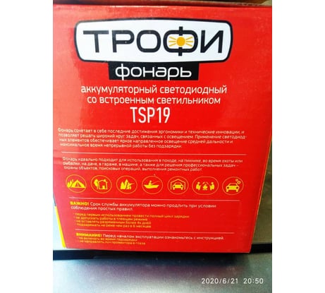 Отзывы о фонаре ТРОФИ TSP19 Акку 4V2Ah, 19+18xLED, ЗУ 220V C0045552