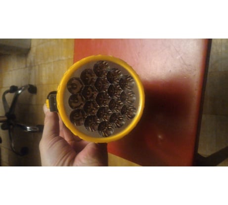 Тусклый фонарь. Если только пол ноги посветить в тёмное время суток. Для переноса с собой очень грамоздкий, не карманный.