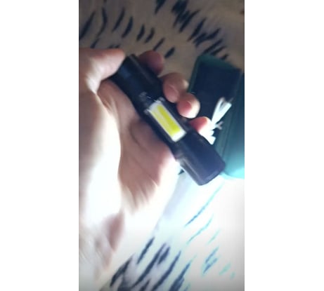 Основной (прямой) источник обнаружил необычно малое в сравнение с фонариками идентичной конструкции (Код товара: 16765549 и 25107903) световое пятно (по площади меньше около 1.8 раз, почти в два раза), с явно выраженными неоднородностями (обычно бывает слабовыраженная текстура, но без переливов), по цвету грязновато-неоднородное (субъективно в среднем 3800K с примесями фиолетового при затухании, вобщем это фонарик, а не оптический прибор). Световой поток точно ниже заявленного, полагаю порядка 120лм. Боковой фонарь представляет линейку из восьми диодиков, свет необычно прохладный (в подавляющем большинстве случаев COB-диоды светят теплее). И главное - ОТСУТСТВИЕ ПУЛЬСАЦИИ на обоих диодах, чем не смог похвастаться даже кратно дорогой фонарик (Код товара: 33270564). Режим маяка (или, как версия, отпугиватель животных) мигает примерно 3.5 раз в секунду. Корпус полностью пластиковый, отражатель в наличии (белый матовый). Линза пластиковая, имеет ни на что не влияющую диаметральную царапину с внутренней стороны, признаков вываливания не проявляет. Вершина линзы на 0.3мм глубже края плафона, т.е. его можно ставить на плоскость, но в условиях эксплуатации линза уязвима перед внешними воздействиями. Весит со шнурком 34.2 гр. Поставляется в рабочем боксе без дополнительных упаковок и какого-либо присутствия сопроводительной документации. Микротекст фирменной наклейки скрыт под наклейкой магазина, однако если докопаться, то обнаружится: "IP-X4, 3 режима, максимальная дальность 50м, световой поток 300 люмен". В общем случае для таких устройств следует сразу зарядить до упора, разрядить и снова зарядить. Длительность первой зарядки установить не удалось, т.к. индикатор и спустя десять часов не отключился. На первой зарядке основной фонарь показал 130 минут непрерывной работы. Свежезаряженный фонарик светит порядка 130 минут после чего защита аккумулятора от полного разряда отключает. Далее несколько циклов заряд -> разряд: 12ч -> 30мин, 1ч -> 105мин, 2ч -> 130мин, 4ч -> 130мин, 1.5ч (сработал ограничитель) -> 130мин. На боковом светильнике (COB): 1.5ч (сработал ограничитель) -> 140мин, 2ч -> 105мин, 4ч -> 110мин . Ограничитель заряда есть, но срабатывает (гаснет индикатор) через раз, а то и реже, хотя зарядка, похоже, уже не осуществляется, иначе ощущался бы нагрев. Вообще-то работа ограничителя заряда зависит от мощности источника и его напряжения (надо понимать, что +5V могут в реальности быть и +4.9v и 5.2v). С зарядкой от PowerBank какие-то непонятки, возможно проблема не в фонарике (надо понимать, что фонарик слишком малая нагрузка для емких энергохранилищ). В итоге - как бытовым фонариком доволен, не говоря о том, что отсутствие мерцания на фонарях с контроллером, как оказалось, это какбы редкость. С длительностью заряжания имеют место непонятки - вобщем не держите на заряднике больше трех часов после полного разряда, который лучше не допускать. Хранить разряженным нельзя.